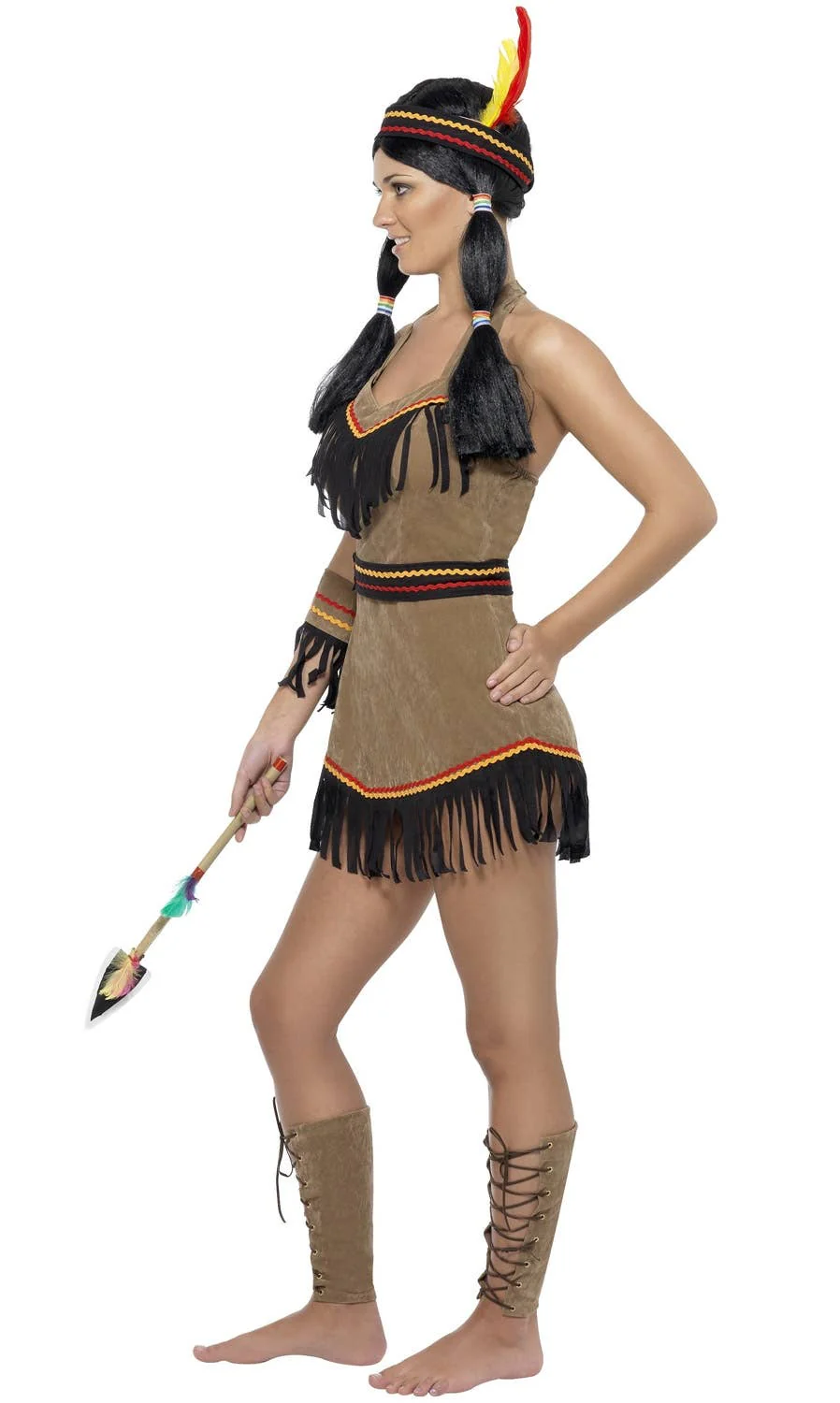 Native American Womens Indian fancy dress costume by Smiffy's. This Wild West Indian costume for women is perfect for next Cowboys and Indians fancy dress party! Warn the tribe of intruders when you wear this Womens Indian costume made by Smiffy's. This womens wild west native costume is an outstanding way to stand out from the tribe at your next western themed costume party.